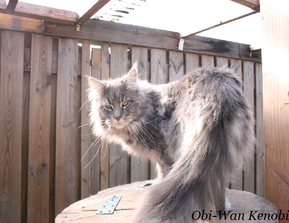 Obi Wan steht auf sehr kräftigen Beinen. Er hat ein sehr schönes blau mit Classic-Zeichnung, eine schöne Schnauze, einen guten Ohrenstand mit wunderschönen Luchspinseln und einen super behaarten XXL Schwanz.